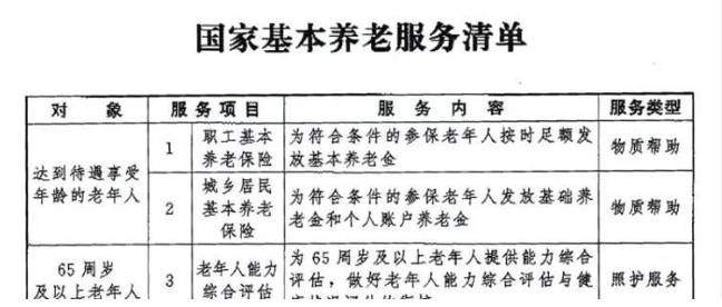 国家基本养老服务清单来了