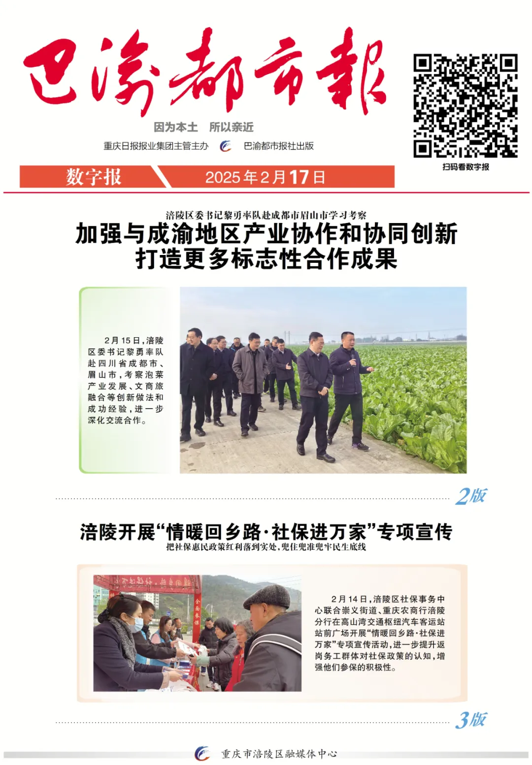 扫码看《巴渝都市报》 | 今日看点:涪陵开展“情暖回乡路·社保进万家”专项宣传